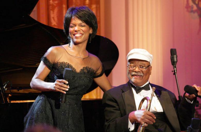 Keywords: Nnenna Freelon, Clark Terry.jpg Jazz musicians Nnenna Freelon and Clark Terry perform at the White House on September 14 2006 during the Thelonious Monk Institute of Jazz dinner http //www whitehouse gov/news/releases/2006/09/images/20060914-5_p091406sc-0626-1-515h html 2006-09-14 White House Photographer Shealah Craighead PD-USGov Clark Terry Nnenna Freelon Music in 2006 Music performances in the White House Photographs by Shealah Craighead 20060914 |