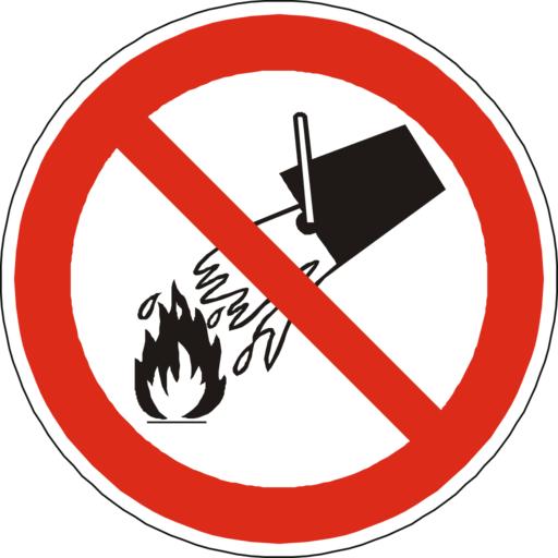 Keywords: no water on fire prohibited forbidden not allowed sign symbol icon