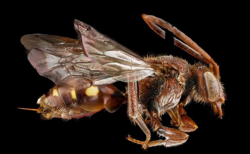 Keywords: bee bees nomada nomada maculata nomadamaculata hymenoptera maine acadia national park acadianationalpark acadia macro stacked photo stacked photo stackedphoto stackshot zerene stacker zerenestacker biml usgs droege new england newengland nps national park nationalpark native bee nativebee black background surreal animal photo border Acadia National Park in Maine has plenty of bees and is one of the few areas of the country where some understanding of the past bee community has been published, by the Proctor of Proctor and Gamble on Mount Desert Island. Nomada maculata is a nest parasite...mostly likely on some of the larger spring Andrena species. Picture taken by Sierra Williams and shopping by Elizabeth Garcia. ~~~~~~~~~~{{{{{{0}}}}}}~~~~~~~~~~ All photographs are public domain, feel free to download and use as you wish. Photography Information: Canon Mark II 5D, Zerene Stacker, Stackshot Sled, 65mm Canon MP-E 1-5X macro lens, Twin Macro Flash in Styrofoam Cooler, F5.0, ISO 100, Shutter Speed 200 Beauty is truth, truth beauty - that is all Ye know on earth and all ye need to know " Ode on a Grecian Urn" John Keats You can also follow us on Instagram account USGSBIML Want some Useful Links to the Techniques We Use? Well now here you go Citizen: Art Photo Book: Bees: An Up-Close Look at Pollinators Around the World www.qbookshop.com/products/216627/9780760347386/Bees.html... Basic USGSBIML set up: www.youtube.com/watch?v=S-_yvIsucOY USGSBIML Photoshopping Technique: Note that we now have added using the burn tool at 50% opacity set to shadows to clean up the halos that bleed into the black background from "hot" color sections of the picture. www.youtube.com/watch?v=Bdmx_8zqvN4 PDF of Basic USGSBIML Photography Set Up: ftp://ftpext.usgs.gov/pub/er/md/laurel/Droege/How%20to%20Take%20MacroPhotographs%20of%20Insects%20BIML%20Lab2.pdf Google Hangout Demonstration of Techniques: plus.google.com/events/c5569losvskrv2nu606ltof8odo or www.youtube.com/watch?v=4c15neFttoU Excellent Technical Form on Stacking: www.photomacrography.net/ Contact information: Sam Droege sdroege@usgs.gov 301 497 5840 Acadia National Park in Maine has plenty of bees and is one of the few areas of the country where some understanding of the past bee community has been published, by the Proctor of Proctor and Gamble on Mount Desert Island. Nomada maculata is a nest parasite...mostly likely on some of the larger spring Andrena species. Picture taken by Sierra Williams and shopping by Elizabeth Garcia. ~~~~~~~~~~{{{{{{0}}}}}}~~~~~~~~~~ All photographs are public domain, feel free to download and use as you wish. Photography Information: Canon Mark II 5D, Zerene Stacker, Stackshot Sled, 65mm Canon MP-E 1-5X macro lens, Twin Macro Flash in Styrofoam Cooler, F5.0, ISO 100, Shutter Speed 200 Beauty is truth, truth beauty - that is all Ye know on earth and all ye need to know " Ode on a Grecian Urn" John Keats You can also follow us on Instagram account USGSBIML Want some Useful Links to the Techniques We Use? Well now here you go Citizen: Art Photo Book: Bees: An Up-Close Look at Pollinators Around the World www.qbookshop.com/products/216627/9780760347386/Bees.html... Basic USGSBIML set up: www.youtube.com/watch?v=S-_yvIsucOY USGSBIML Photoshopping Technique: Note that we now have added using the burn tool at 50% opacity set to shadows to clean up the halos that bleed into the black background from "hot" color sections of the picture. www.youtube.com/watch?v=Bdmx_8zqvN4 PDF of Basic USGSBIML Photography Set Up: ftp://ftpext.usgs.gov/pub/er/md/laurel/Droege/How%20to%20Take%20MacroPhotographs%20of%20Insects%20BIML%20Lab2.pdf Google Hangout Demonstration of Techniques: plus.google.com/events/c5569losvskrv2nu606ltof8odo or www.youtube.com/watch?v=4c15neFttoU Excellent Technical Form on Stacking: www.photomacrography.net/ Contact information: Sam Droege sdroege@usgs.gov 301 497 5840