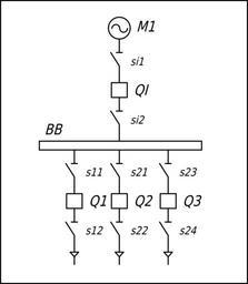 Π΅ΠΌΠ° M1 - ΠΈΡΡΠΎΡΠ½ΠΈΠΊ ΠΏΠΈΡΠ°Π½ΠΈΡ QI - Π²Π²ΠΎΠ΄Π½ΠΎΠΉ Π²ΡΠΊΠ»ΡΡΠ°ΡΠ΅Π»Ρ<br> si1 si2 - Ρ Π°Π·ΡΠ΅Π΄ΠΈΠ½ΠΈΡΠ΅Π»ΠΈ Π²Π²ΠΎΠ΄Π½ΠΎΠ³ΠΎ Π²ΡΠΊΠ»ΡΡΠ°ΡΠ΅Π»Ρ BB - ΡΠ±ΠΎΡ Π½ΡΠ΅ ΡΠΈΠ½Ρ Q1 Q2 Q3 - ΡΠΈΠ»ΠΎΠ²ΡΠ΅ Π²ΡΠΊΠ»ΡΡΠ°ΡΠ΅Π»ΠΈ ΠΎΡΡ