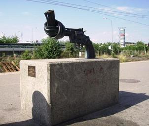Keywords: Non Violence 1998. Täby. Carl Fredrik Reuterswärd.JPG en Picture of statue Non Violence in Täby made by Carl Fredrik Reuterswärd 1998 sv Foto av monumentet Non violence i Täby utförd av Carl Fredrik Reuterswärd 1998 own Raphael Saulus Non-Violence sculpture Sculptures in Täby Municipality Bronze sculptures in Sweden Täby C |