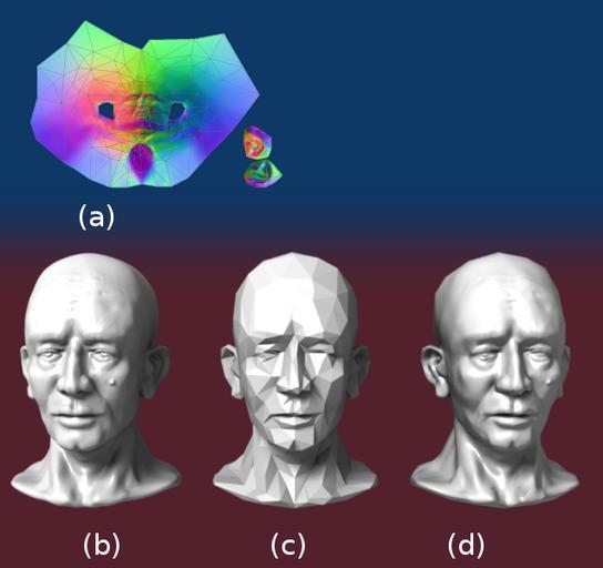 Keywords: เปรียบเทียบโมเดลที่ใช้ normal map.png Created with Blender th a นอร์มอลแมพ bake ด้วยจาก b ไป c ด้วย บลน ดอร์ b โม ดลสาม หลี่ยม tri 78 642 ชิ้น sculpt ด้วย บลน ดอร์ c 768 ชิ้น decimate จาก b d 768 ชิ้น รน ดอร์โดยใช้นอร์มอลแมพ a Banlu Kemiyatorn Banlu Kemiyatorn 2009-01-27 Rendered Normal mapping |