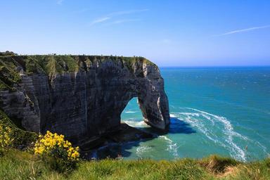Keywords: normandy sea entretat france roche cliff the north sea sunny day natural formation