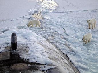 Keywords: north pole iceberg ice cold arctic snow animal polar bears bear submarine warship predator