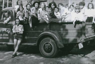 Keywords: girl guides girlguides northbrook 1940s sandy drysdale sandydrysdale mary lloyd johnson marylloydjohnson marlene jerome marlenejerome marlene hall marlenehall audrey freeburn audreyfreeburn audrey weese audreyweese theresa jerome theresajerome theresa craig theresacraig joanne mcneil joannemcneil shirley roseplot shirleyroseplot marilyn dicks marilyndicks marilyn salmond marilynsalmond barbara renaud barbararenaud barbara thompson barbarathompson verna rosenplot vernarosenplot verna wood vernawood hilda woodman hildawoodman hilda davis hildadavis phyllis creighton phylliscreighton professor jones dora shier dorashier betty both bettyboth norvalle inwood norvalleinwood people This is a photo of the Northbrook Girl Guides in June 1950. The man driving the truck is Sandy Drysdale who lived in the home where Wannamaker's Store is now located. Sandy donated his truck and time to take the Guides to Loon Lake Camp. This photo was taken in front of the utility building at Loon Lake Lodge. 'The Guides had a hike on Loon Lake where Professor Jones gave lectures on plant, bird and animal life in the wild.' 1. Sandy Drysdale (lived in the house that is now Wannamaker's Store) 2. Mary Lloyd Johnson - Captain-very instrumental in arranging all the troupe's activities and outings. Even drove a group to a G.G. convention in Toronto once. This photo was on her camera. 3. Marlene Jerome (Hall) - cousin of Elaine Bolton 4. Audrey Freeburn (Ray Weese) - sister in law to Rita Freeborn at the Flinton Post Office 5. Theresa Jerome (Craig) - sister of Marlene 6. Joanne McNeil 7. Shirley Rosenplot 8. Norvalle Inwood 9. Marilyn Dicks (Mack Salmond) - Marilyn's mother made most of the uniforms 10. Betty Both 11. Barbara Renaud (Thompson) 12. Verna Rosenplot (Clifford Wood) 13. Hilda Woodman (Davis) 14. ??? 15. ??? 16. Phyllis Creighton 17. ??? 18. Dora Shier On the back of the photo Mary Lloyd Johnson further notes: 'Later in the Summer we held Patrol Leader training at Bill and Jan Dicks' cottage on Loon Lake. The Professor and Mrs. Jones (and dog Streba) motored across the Lake tohave a meal with us as our guests. On that weekend we had a Guide Leader from England with us, sister-in-law of County Sheriff Webster from Napanee'. On this outing Guides from other areas had been invited and it's possible that the three girls we can't identify did not belong to the 1st N.A. co. This is a photo of the Northbrook Girl Guides in June 1950. The man driving the truck is Sandy Drysdale who lived in the home where Wannamaker's Store is now located. Sandy donated his truck and time to take the Guides to Loon Lake Camp. This photo was taken in front of the utility building at Loon Lake Lodge. 'The Guides had a hike on Loon Lake where Professor Jones gave lectures on plant, bird and animal life in the wild.' 1. Sandy Drysdale (lived in the house that is now Wannamaker's Store) 2. Mary Lloyd Johnson - Captain-very instrumental in arranging all the troupe's activities and outings. Even drove a group to a G.G. convention in Toronto once. This photo was on her camera. 3. Marlene Jerome (Hall) - cousin of Elaine Bolton 4. Audrey Freeburn (Ray Weese) - sister in law to Rita Freeborn at the Flinton Post Office 5. Theresa Jerome (Craig) - sister of Marlene 6. Joanne McNeil 7. Shirley Rosenplot 8. Norvalle Inwood 9. Marilyn Dicks (Mack Salmond) - Marilyn's mother made most of the uniforms 10. Betty Both 11. Barbara Renaud (Thompson) 12. Verna Rosenplot (Clifford Wood) 13. Hilda Woodman (Davis) 14. ??? 15. ??? 16. Phyllis Creighton 17. ??? 18. Dora Shier On the back of the photo Mary Lloyd Johnson further notes: 'Later in the Summer we held Patrol Leader training at Bill and Jan Dicks' cottage on Loon Lake. The Professor and Mrs. Jones (and dog Streba) motored across the Lake tohave a meal with us as our guests. On that weekend we had a Guide Leader from England with us, sister-in-law of County Sheriff Webster from Napanee'. On this outing Guides from other areas had been invited and it's possible that the three girls we can't identify did not belong to the 1st N.A. co. |