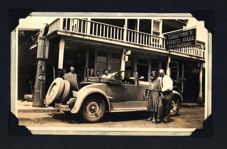 Keywords: thompson variety store thompsonvarietystore thompson's general store thompsonsgeneralstore northbrook ontario canada 1928 john carscallen johncarscallen glastonbury general store generalstore variety store varietystore alf northey alfnorthey lula northey lulanorthey doug butson dougbutson tish butson tishbutson dick hook dickhook olive hook olivehook ron sedore ronsedore shirley sedore shirleysedore bob glecoff bobglecoff margaret glecoff margaretglecoff charlene van dusen charlenevandusen kevin van dusen kevinvandusen foodland photo border A scene in front of the Thompson's Variety Store in Northbrook, Ontario 1928. Unknown people in photograph. The following information was written/researched by Eileen Flieler for the 2015 CDHS Calendar: 'The first owner of this business, John Carscallen, was one of the earliest settlers in Glastonbury. It was purchased from him by Casper and Lulu Thompson between 1920 and 1930. It was a general store where residents could buy feed, hardware, food and dry goods and became known as C.C. Thompson's Variety Store. About 1938 it operated as a Red and White Store. Over the years it was owned by Alf and Lula Northey, Doug and Tish Butson, Ron and Shirley Sedore, Dick and Olive Hook who sold it to Bob and Margaret Glecoff. The store had many iterations. The original building burned in the late 1930s and was rebuilt. Thompson's renovated it to a more modern design. Hook's tore this store down in 1985 and built a new one which operated as a Freshmart. (When they operated the old store it operated under the name Delibrook). The Glecoffs added to the Freshmart in 1990, 1992 and again in 1998/99 which brought it to its current size. It is now operated as a 'Foodland' by the daughter and son-in-law of Glecoffs, Charlene and Kevin Van Dusen. A scene in front of the Thompson's Variety Store in Northbrook, Ontario 1928. Unknown people in photograph. The following information was written/researched by Eileen Flieler for the 2015 CDHS Calendar: 'The first owner of this business, John Carscallen, was one of the earliest settlers in Glastonbury. It was purchased from him by Casper and Lulu Thompson between 1920 and 1930. It was a general store where residents could buy feed, hardware, food and dry goods and became known as C.C. Thompson's Variety Store. About 1938 it operated as a Red and White Store. Over the years it was owned by Alf and Lula Northey, Doug and Tish Butson, Ron and Shirley Sedore, Dick and Olive Hook who sold it to Bob and Margaret Glecoff. The store had many iterations. The original building burned in the late 1930s and was rebuilt. Thompson's renovated it to a more modern design. Hook's tore this store down in 1985 and built a new one which operated as a Freshmart. (When they operated the old store it operated under the name Delibrook). The Glecoffs added to the Freshmart in 1990, 1992 and again in 1998/99 which brought it to its current size. It is now operated as a 'Foodland' by the daughter and son-in-law of Glecoffs, Charlene and Kevin Van Dusen. |