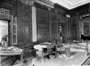 | Keywords: u.s. national archives usnationalarchives harry s. truman library harrystrumanlibrary nara:arcid=6993211 blackandwhite monochrome black and white Original Caption: Northeast View of the State Dining Room during the White House Renovation, 11/21/1951 Created By: National Archives and Records Administration. Office of Presidential Libraries. Harry S. Truman Library. (04/01/1985 - ) From: Series: Photographs Relating to the Administration, Family, and Personal Life of Harry S. Truman, compiled 1957 - 2004, documenting the period 1849 - 2004 Contact: Harry S. Truman Library (NLHST), 500 West U.S. Highway 24, Independence, MO, 64050-1798. PHONE: 816-268-8272; FAX: 816-268-8295; EMAIL:truman.reference@nara.gov. Production Dates: 11/21/1951 Scope and Content Note: Northeast view of the State Dining Room during the White House renovation. Most of the paneling has been re-installed. The pilaster in the foreground is painted light green, which is to be applied to all of the paneling in the room. Persistent URL: arcweb.archives.gov/arc/action/ExternalIdSearch?id=6993211 Truman Library URL: www.trumanlibrary.org/photographs/view.php?id=19083 Access Restrictions: Unrestricted Use Restrictions: Unrestricted Original Caption: Northeast View of the State Dining Room during the White House Renovation, 11/21/1951 Created By: National Archives and Records Administration. Office of Presidential Libraries. Harry S. Truman Library. (04/01/1985 - ) From: Series: Photographs Relating to the Administration, Family, and Personal Life of Harry S. Truman, compiled 1957 - 2004, documenting the period 1849 - 2004 Contact: Harry S. Truman Library (NLHST), 500 West U.S. Highway 24, Independence, MO, 64050-1798. PHONE: 816-268-8272; FAX: 816-268-8295; EMAIL:truman.reference@nara.gov. Production Dates: 11/21/1951 Scope and Content Note: Northeast view of the State Dining Room during the White House renovation. Most of the paneling has been re-installed. The pilaster in the foreground is painted light green, which is to be applied to all of the paneling in the room. Persistent URL: arcweb.archives.gov/arc/action/ExternalIdSearch?id=6993211 Truman Library URL: www.trumanlibrary.org/photographs/view.php?id=19083 Access Restrictions: Unrestricted Use Restrictions: Unrestricted |