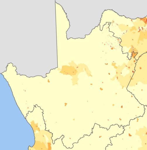 Keywords: Northern Cape 2001 population density map.svg ffffcc <1 inhabitant/km² ffeda0 1 “3 inhabitants/km² fed976 3 “10 inhabitants/km² feb24c 10 “30 inhabitants/km² fd8d3c 30 “100 inhabitants/km² fc4e2a 100 “300 inhabitants/km² e31a1c 300 “1000 inhabitants/km² bc0026 1000 “3000 inhabitants/km² 800026 >3000 inhabitants/km² Projection is Albers Equal-Area Conic with standard parallels at 25 5° S and 31 5° S and origin at 28 5° S 25 5° E Statistics South Africa's Census 2001 is the source of the basic population data The map results from my own processing of the data Htonl 2010-02-10 Superseded demographic maps of South Africa Maps of the Northern Cape The following license applies to the population data on which the map is based http //www statssa gov za/copyrightdisclaimer asp the user acknowledges Stats SA as the source of the basic data wherever they process apply utilise publish or distribute the data and also that they specify that the relevant application and analysis where applicable result from their own processing of the data The following tag applies to the map itself |