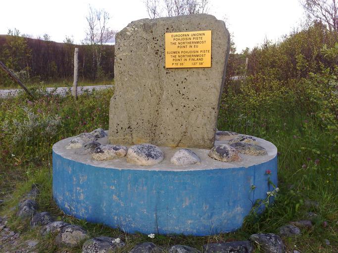 Keywords: Northernmost point in European Union.jpg Utsjoki Finland Note that the precise northernmost point is located around 100 metres from this monument fi Kuva Nuorgamista Euroopan unionin pohjoisimmalta pisteeltä Norjan rajan läheisyydessä Utsjoki Finlande own <br />Transferred from http //fi wikipedia org fi wikipedia<br />Original uploader was Peltsi84 at http //fi wikipedia org fi wikipedia 2008-08-15 J Pelkonen 70 088588 27 960548 region FI-10 fi Finnish Wikipedia Peltsi84 Original upload log page fi wikipedia 150820081292 jpg 2008-08-25 13 27 Peltsi84 2592×1944× 1259288 bytes <nowiki> Lähde Itse otettu Päiväys 15 08 2008 Tekijä J Pelkonen Tekijänoikeuksien haltija </nowiki> Nuorgam Finland-Norway border Taken with Nokia N95 Signs in Finland Politics of the European Union August 2008 in Finland August 2008 in Norway Photographs taken on 2008-08-15 2008 at international borders |