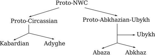 Keywords: Northwest Caucasian languages (en).svg Translation possible A flow chart showing the development of the Northwest Caucasian languages Created by bdesham with Inkscape Circassians Abkhazian language Northwest Caucasian languages Unidentified graphs |