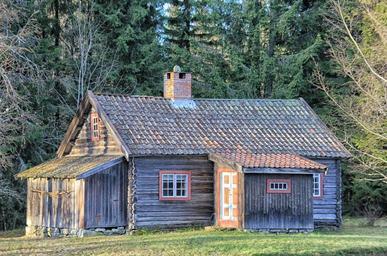 Keywords: norway log cabin house home trees grass scenic rural country countryside summer spring nature outside