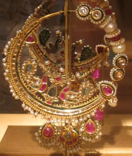 | Keywords: Nose ring, northern India, early 20th century, gold, rubies, emeralds, diamonds, pearls and enamel, HAA.JPG en Nose ring northern India early 20th century gold rubies emeralds diamonds pearls and enamel on long-term loat to the Honolulu Academy of Arts own Hiart photo 2011 Mughal art in the Honolulu Museum of Art Mughal jewellery Nose rings Cc-zero | ||||