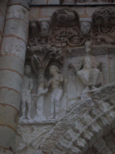 Keywords: Notre-Dame la Grande (frieze detail).jpg Notre-Dame la Grande à Poitiers représentant Adam et Eve à gauche et Nabuchodonosor II à droite <br/> en Frieze detail of Notre-Dame la Grande in Poitiers France showing Adam and Eve on the left and Nabuchodonosor II on the right own 2006-06-25 TwoWings User TwoWings/Note Reliefs of Temptation of Adam and Eve Nebuchadnezzar II Église Notre-Dame la Grande de Poitiers Photos by TwoWings PD-self Taken with Nikon Coolpix 4600 |