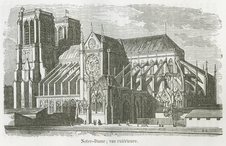 Keywords: Notre-Dame, vue extérieure, 1855.jpg A view of the Cathedral of Notre-Dame on the Ile de la Cité in Paris 1855 engraving 6 2 x 10 5 cm Institution Brown University Library object history exhibition history credit line Published in Guide dans les monuments de Paris Paris Paulin et Le Chevalier 1855 accession number 1150468920549590 PD-old Engravings of buildings in Paris Images of Paris from the Brown University Library Guide dans les monuments de Paris Engravings of Notre-Dame de Paris South facade of Notre-Dame de Paris Notre-Dame de Paris in the 1850s |