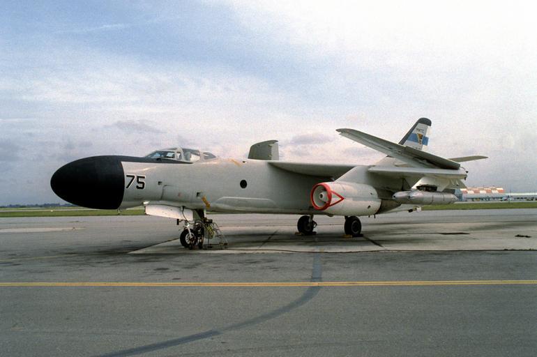 | Keywords: NRA-3B PTMC DN-SC-83-05204.JPEG en A Douglas NRA-3B Skywarrior aircraft BuNo 144834 equipped with electronic warfare jammer pods with its wing folded up at the Pacific Missile Test Center Point Mugu California USA on 5 Apr 1982 FAIL 144834 is currently located at AMARG Davis-Monthan AFB This NRA-3B aircraft is actually operated by Raytheon Flight Test Services out of Van Nuys airport CA as N578HA Buno 144825 It had the Snoopy nose radome removed and replaced with a conventional A-3 radome US Defense Visual Information Center photo DN-SC-83-05204 1982-04-05 Camera Operator PHC Thornsley USN PD-USGov Douglas A-3 Skywarrior test aircraft Raytheon Pacific Missile Test Center Point Mugu Aircraft radomes 1982 in California |
