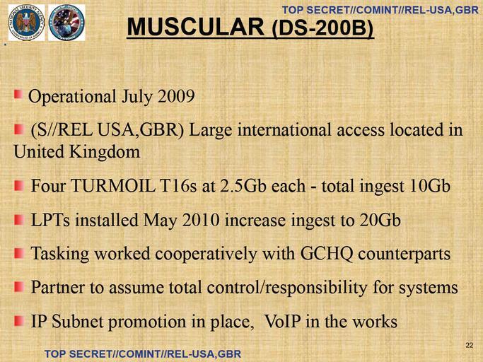 Keywords: NSA-MUSCULAR-p22.png en MUSCULAR program Unclear possibly 2010 http //cryptome org/2014/01/nsa-sso-dk pdf Unknown NSA employee PD-USGov Uploaded with UploadWizard National Security Agency United States Government Communications Headquarters MUSCULAR 2013 Mass Surveillance Disclosures |