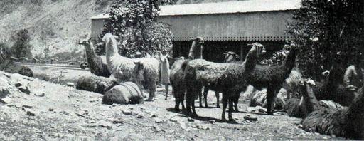 | Keywords: NSRW Story of Wool - llamas in Peru.jpg en LLAMAS IN PERU The above is a picture of a group of llamas The llamas and the alpacas are found in the high Andes of Peru These were the wool producing animals of the Incas and are yet of most of the people of the Andes and the western coast of South America The wool varies in length from two to six inches and is of a lustrous fine quality mostly white black or gray The New Student's Reference Work v 5 1914 Story of Wool narrative between pp 2108 and 2109 fourth page Pan American Union published 1914 PD-US LA2-NSRW-5-0124 jpg Lama |