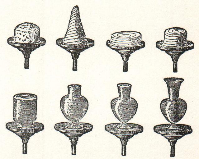 Keywords: NSRW Successive stages of earthenware vessel on the potter's wheel.jpg The New Student's Reference Work author 1914 Pottery LA2-NSRW-4-0043 jpg