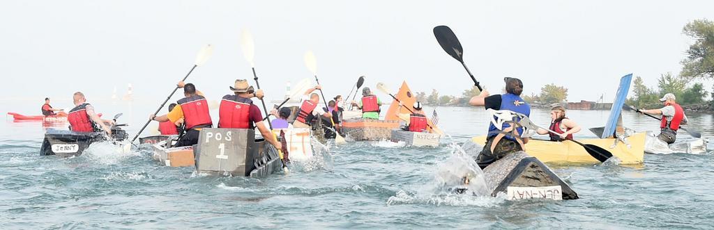 Keywords: NSTC participates in Great Lakes Regatta 150901-N-IK959-772.jpg en GREAT LAKES Ill September 1 2015 Cardboard boat captains paddle their crafts to the first orange buoy marker during a free-for-all race in 2015 Great Lakes Morale Welfare and Recreation MWR Cardboard Boat Regatta on Lake Michigan at Seabee Park here Sept 1 Naval Service Training Command s NSTC cardboard boat is piloted by Lt Sean Brophy Other crewmembers included Cmdr Scott Norton Lt Dan Golde and Lt Brent Bondurant NSTC s boat won their heat but finished out of the running for the top prizes U S Navy photo by Scott A Thornbloom 2015-09-01 Scott Thornbloom https //www dvidshub net/image/2158408 150901-N-IK959-772 2015-09-03 15 36 GREAT LAKES IL US 3 PD-USGov-Military-Navy Lake Michigan Images from DoD uploaded by FĂŚ |