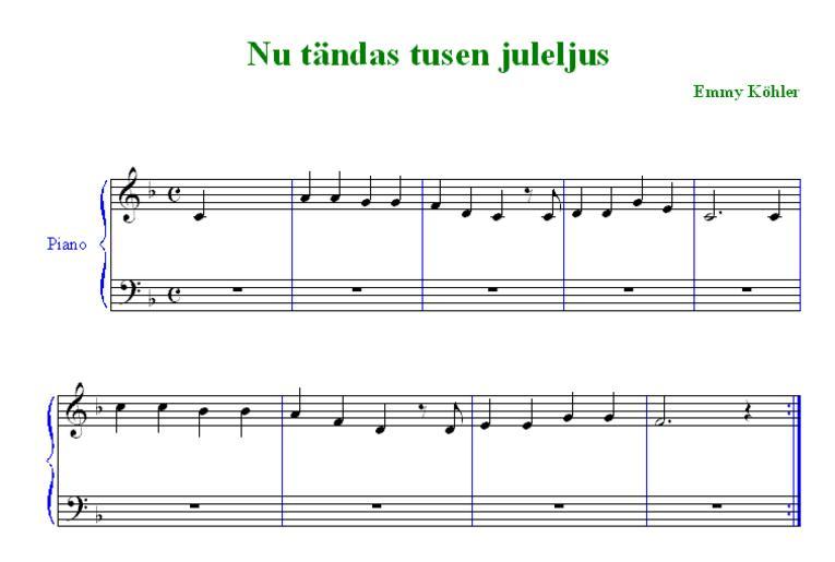 Keywords: Nu tandas tusen.GIF Note for a Swedish Christmas song The Swedish Psalm book 2006-09-16 Emmy Köhler Public domain according to the law of copyright PD-old Music of Sweden