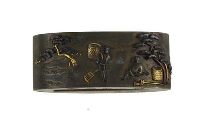 Keywords: Nukagawa Yasunori - Fuchi with Two Figures on a Shore - Walters 51982.jpg Two figures are shown on a shore with pine trees Each figure has a basket and a rake They may be gathering sea weed There is a pine tree on either side of the composition and on the reverse This is part of a set with Walters 51 983 ~ 1800 Edo silver copper gold cm 3 6 l accession number 51 982 26762 William T / Henry Walters Collection Baltimore date and mode of acquisition unknown Walters Art Museum Henry Walters Acquired by William T or Henry Walters Signature Seiundô Nukagawa Yasunori kao place of origin Mito Japan Walters Art Museum license Fuchi in the Walters Art Museum Nukagawa Yasunori Media contributed by the Walters Art Museum needs category review |