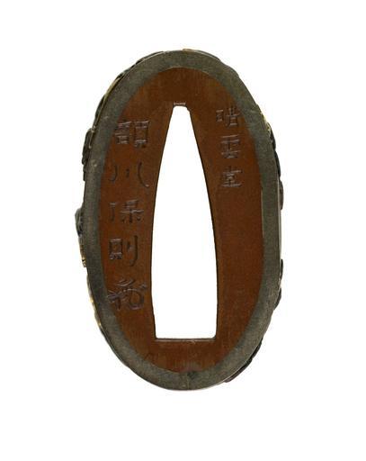 Keywords: Nukagawa Yasunori - Fuchi with Two Figures on a Shore - Walters 51982 - Mark A.jpg Two figures are shown on a shore with pine trees Each figure has a basket and a rake They may be gathering sea weed There is a pine tree on either side of the composition and on the reverse This is part of a set with Walters 51 983 ~ 1800 Edo silver copper gold cm 3 6 l accession number 51 982 26762 William T / Henry Walters Collection Baltimore date and mode of acquisition unknown Walters Art Museum Henry Walters Acquired by William T or Henry Walters Signature Seiundô Nukagawa Yasunori kao place of origin Mito Japan Walters Art Museum license Fuchi in the Walters Art Museum Nukagawa Yasunori Media contributed by the Walters Art Museum needs category review |