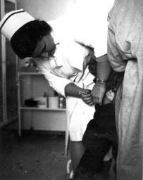 Keywords: joan steider joansteider nursing algeria mennonite board of missions mennoniteboardofmissions blackandwhite monochrome black and white Caption: 1965. Nurse Joan Steider giving a shot in Toumghini, Algeria. Citation: Mennonite Board of Missions. Photographs. Algeria, 1963-1965. IV-10-7.2 Box 1 Folder 24-25, Photo #8. Mennonite Church USA Archives - Goshen. Goshen, Indiana. Caption: 1965. Nurse Joan Steider giving a shot in Toumghini, Algeria. Citation: Mennonite Board of Missions. Photographs. Algeria, 1963-1965. IV-10-7.2 Box 1 Folder 24-25, Photo #8. Mennonite Church USA Archives - Goshen. Goshen, Indiana. |
