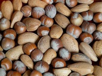 Keywords: nuts hazelnuts almonds shells eat food brown nutritious tasty