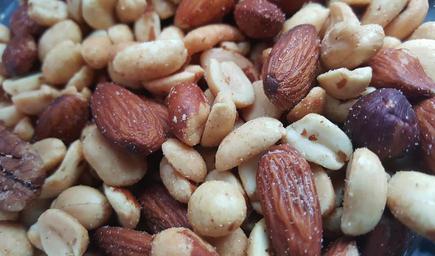 Keywords: nuts mixed nuts food assorted almonds peanuts mixed snack seeds organic diet nutrition healthy fiber calories unsaturated fats magnesium zinc close up