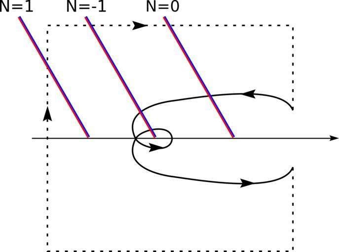 Keywords: Nyquist Criteria.svg An easy way to remeber how to count N in the equation <math>N_z N+N_p</math> crossing RED gives +1 and crossing BLUE gives -1 own 2007-07-02 Mintz l Inkscape Stability theory Nyquist plots