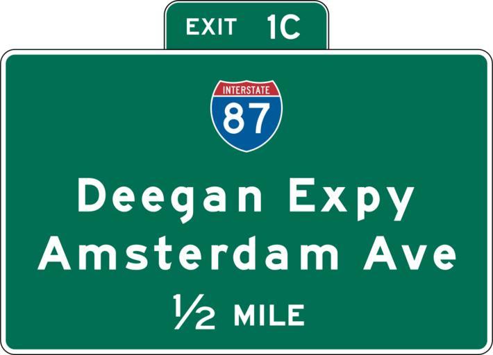 Keywords: NYSDOT Interchange Advance Guide Signs.svg NYSDOT Interchange Advance Guide Signs New York Self made based on NYSDOT sign drawing This happens to use a New York City exit as an example but illustrates a state design not a sign of the New York City government 2009-04-14 own assumed Overpush~commonswiki Diagrams of U S Interchange Advance Guide Signs Diagrams of guide signs in New York Diagrams of road signs of New York City Interstate 87 |