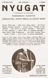 Keywords: Nyugat1908-1.jpg Nyugat Hungarian literary journal - cover of the first issue 1908 A Nyugat folyóirat elsÅ‘ számának cÃmlapja 1908 own User Lelkesa PD-old ImageNote 1 278 433 89 15 474 772 2 Fülöp Ö Beck 1873 “1945 Beck Ö Fülöp 1873 “1945 ImageNoteEnd 1 ImageNote 2 314 360 111 15 474 772 2 Szabolcska Mihály 1861 “1930 ImageNoteEnd 2 ImageNote 3 255 146 97 22 474 772 2 Ignotus 1869 “1949 Ignotus 1869 “1949 ImageNoteEnd 3 ImageNote 4 151 175 138 23 474 772 2 Miksa FenyÅ‘ 1877 “1972 FenyÅ‘ Miksa 1877 “1972 ImageNoteEnd 4 ImageNote 5 316 175 133 23 474 772 2 ErnÅ‘ Osvát 1876 “1929 Osvát ErnÅ‘ 1876 “1929 ImageNoteEnd 5 ImageNote 6 180 238 77 18 474 772 2 Elek Artúr 1876 “1944 ImageNoteEnd 6 ImageNote 7 367 237 81 21 474 772 2 Jób Dániel 1880 “1955 ImageNoteEnd 7 ImageNote 8 225 255 93 21 474 772 2 Mld Lengyel Géza 1881 “1967 ImageNoteEnd 8 ImageNote 9 180 291 84 19 474 772 2 Révész Béla 1876 “1944 ImageNoteEnd 9 ImageNote 10 21 238 49 19 474 772 2 Ignotus 1869 “1949 Ignotus 1869 “1949 ImageNoteEnd 10 ImageNote 11 106 272 77 22 474 772 2 Endre Ady 1877 “1919 Ady Endre 1877 “1919 ImageNoteEnd 11 ImageNote 12 361 273 81 21 474 772 2 Szini Gyula 1876 “1932 ImageNoteEnd 12 ImageNote 13 19 309 88 18 474 772 2 Mld Szász Zoltán 1877 “1940 ImageNoteEnd 13 ImageNote 14 346 309 99 18 474 772 2 Mld Kemény Simon 1882 “1945 ImageNoteEnd 14 ImageNote 15 265 309 77 21 474 772 2 Endre Ady 1877 “1919 Ady Endre 1877 “1919 ImageNoteEnd 15 ImageNote 16 41 327 49 22 474 772 2 Ignotus 1869 “1949 Ignotus 1869 “1949 ImageNoteEnd 16 ImageNote 17 125 375 95 17 474 772 2 Gellért Oszkár 1882 “1967 ImageNoteEnd 17 ImageNote 18 368 671 81 15 474 772 2 crown korona ImageNoteEnd 18 ImageNote 19 218 360 88 17 474 772 2 Miksa FenyÅ‘ 1877 “1972 FenyÅ‘ Miksa 1877 “1972 ImageNoteEnd 19 ImageNote 20 93 360 72 17 474 772 2 Szini Gyula 1876 “1932 ImageNoteEnd 20 ImageNote 21 404 419 45 17 474 772 2 Gellért Oszkár 1882 “1967 ImageNoteEnd 21 ImageNote 22 63 434 46 15 474 772 2 Gellért Oszkár 1882 “1967 ImageNoteEnd 22 ImageNote 23 77 419 53 17 474 772 2 Ignotus 1869 “1949 Ignotus 1869 “1949 ImageNoteEnd 23 ImageNote 24 22 389 152 15 474 772 2 Margit Kaffka 1880 “1918 Fröhlichné Kaffka Margit 1880 “1918 ImageNoteEnd 24 ImageNote 25 165 405 89 15 474 772 2 Mld Lengyel Géza 1881 “1967 ImageNoteEnd 25 ImageNote 26 362 389 81 15 474 772 2 Miksa FenyÅ‘ 1877 “1972 FenyÅ‘ Miksa 1877 “1972 ImageNoteEnd 26 ImageNote 27 232 375 108 15 474 772 2 DezsÅ‘ Kosztolányi 1885 “1936 Kosztolányi DezsÅ‘ 1885 “1936 ImageNoteEnd 27 ImageNote 28 252 419 75 15 474 772 2 Géza Csáth 1887 “1919 Csáth Géza 1887 “1919 ImageNoteEnd 28 ImageNote 29 178 389 73 17 474 772 2 János Arany 1817 “1882 Arany János 1817 “1882 ImageNoteEnd 29 ImageNote 30 359 403 84 17 474 772 2 Bródy Miksa 1875 “1924 ImageNoteEnd 30 ImageNote 31 280 403 77 17 474 772 2 Comedy Theatre of Budapest VÃgszÃnház ImageNoteEnd 31 ImageNote 32 115 309 126 21 474 772 2 Sully Prudhomme 1839 “1907 Sully Prudhomme 1839 “1907 ImageNoteEnd 32 ImageNote 33 273 276 64 18 474 772 2 Hôtel Pimodan today Hôtel de Lauzun Hôtel Pimodan ma Hôtel de Lauzun ImageNoteEnd 33 ImageNote 34 256 237 90 19 474 772 2 Arturo Graf 1848 “1913 Arturo Graf 1848 “1913 ImageNoteEnd 34 ImageNote 35 175 329 86 18 474 772 2 Mld Greiner JenÅ‘ 1864 “1917 ImageNoteEnd 35 ImageNote 36 21 419 57 18 474 772 2 Bródy Sándor 1863 “1924 A dada 1904 ImageNoteEnd 36 Nyugat journals Lajos Hatvany Fülöp Beck Ö Endre Ady Kelemen Mikes ErnÅ‘ Osvát Ignotus Miksa FenyÅ‘ |