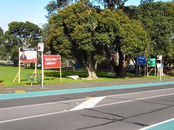 Keywords: NZ election billboards.jpg Election billboards advertising parties standing candidates in the 2005 New Zealand general election The billboards advertise from left the Maori Party Labour a vandalised billboard for the Destiny Church National the Greens and a small billboard for the Libertarianz 2005-08-14 own assumed Gadfium Election posters in New Zealand Billboards in New Zealand Bus lanes in New Zealand |