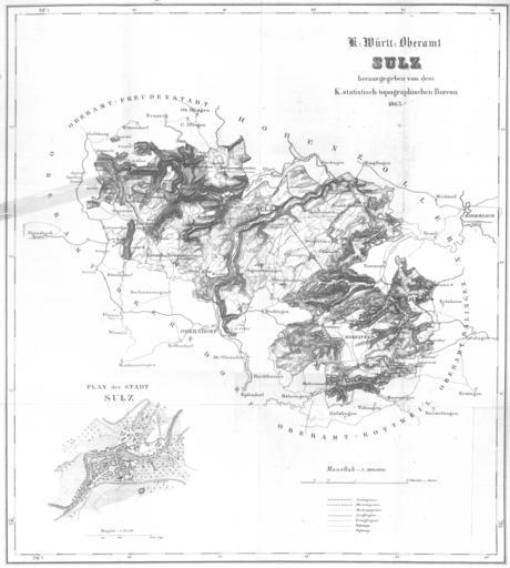 | Keywords: OAB Sulz Karte.png  Beschreibung des Oberamts Sulz ed Statistisch-topographisches Bureau des Königreichs Württemberg Verlag Karl Aue Stuttgart 1863 <br /> Supplement Map of the district Oberamt scale 1 100000 Königlich statistisch-topographisches Bureau 1863 book scanned by uploader other versions PD-old Beschreibung des Oberamts Sulz Old maps of Baden-Württemberg |
