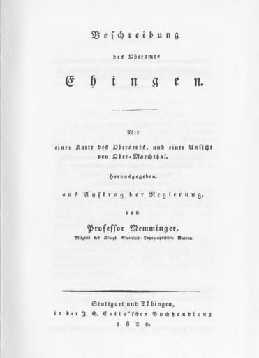 | Keywords: Oberamt Ehingen 001.png  Oberamt Ehingen png 002 Beschreibung des Oberamts Ehingen Scan eines fototechnischen Nachdrucks Scan of a facsimile reprint Bissinger Magstadt 1971 1826 Johann Daniel Georg Memminger 1773 ”1840 PD-old Beschreibung des Oberamts Ehingen  |