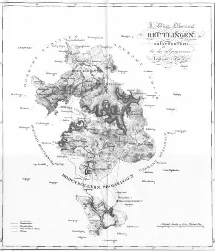 Keywords: Oberamt Reutlingen Karte.jpg LargeImage en Scan from a reprint Beschreibung des Oberamts Reutlingen reprint by Bissinger Verlag Magstadt Prof Johann Daniel Georg von Memminger 1773-1840 1824 PD-old-100 Oberamt Reutlingen