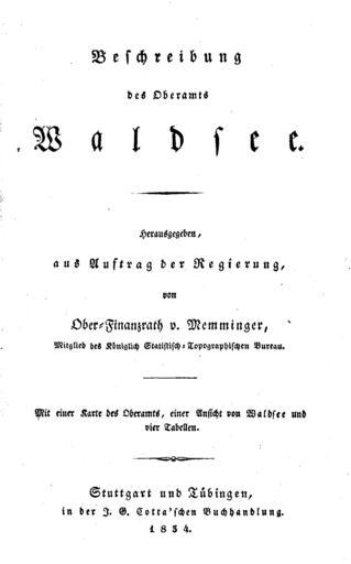 | Keywords: Oberamt Waldsee 001.png <div style font-size 150 align left > 50 - 3 - 25 align left <<< previous 25 align center 25 align right next >>> - 3 </div> de Dies ist ein Scan des Buches en This is a scan of the book Beschreibung des Oberamts Waldsee de Scan eines Originals aus Privatbesitz en Scan from an original book from a private collection 1834 Johann Daniel Georg von Memminger Hrsg /editor Oberamtsmann Bilfinger Hauptautor/main contributor de Der Text ist gemeinfrei da die Autoren vor mehr als 70 Jahren verstorben sind en Public Domain as authors died more than 70 years ago PD-old Beschreibung des Oberamts Waldsee |