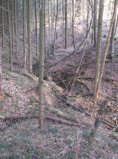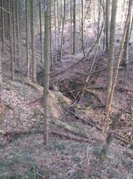 Keywords: Oberste Gabel des Hirtenbachs.jpg Blick talab nach Osten auf die oberste Schluchtgabel des Hirtenbachs keine 50 m östlich der K 2627 von Schwäbisch Hall-Sulzdorf nach Obersontheim-Herlebach Der linke Zweig war zum Aufnahmezeitpunkt trocken der rechte setzte erst zwischen seiner Straßenunterführung und der Gabel ein View to the East and downstream onto the topmost fork of the Hirtenbach gap less than 50 m to the East of the L 2627 Schwäbisch Hall-Sulzdorf “Obersontheim-Herlebach When the image was taken the left branch had no water whereas the flow in the right began between the pipe through which he passes at other times under the road mentioned and the fork shown Vue à l'aval sur la branche supérieure de la petite gorge du ruisseau Hirtenbach moins de 50 m à l'est de la route K 2627 Schwäbisch Hall-Sulzdorf “Obersontheim-Herlebach à la prise du photo la branche gauche était à sec tandis que le long de la droite le cours d'eau cessait en amont entre la branche et la route nommée sous laquelle passe un tuyau amenant des eaux en des temps plus pluvieux 2011-03-09 own Brtlwr2 <span class signature-talk >talk</span> 49 5 2 78 N 9 49 49 22 E region DE_heading E Cc-zero Limpurger Berge Schwäbisch Hall |