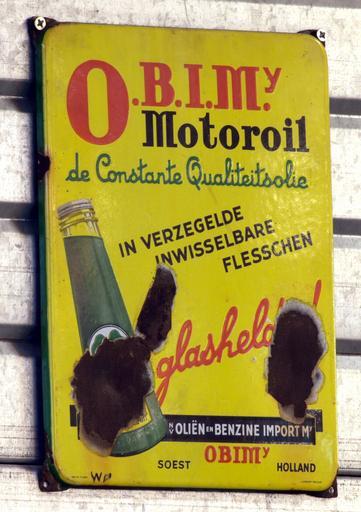 Keywords: Obimy Motoroil, enamel advertising sign.JPG Den Hartogh Ford Museum O B I M y Motoroil de Constante Qualiteitsolie in verzegelde inwisselbare flesschen glashelder Oliën en Benzine import Soest Holland own 2013-02-22 12 06 04 Alf van Beem CC-zero Classic vehicle photographs by Alf van Beem Land vehicles Enamel oil company advertising signs in the Den Hartogh Ford Museum Nostalgia by Alf van Beem |