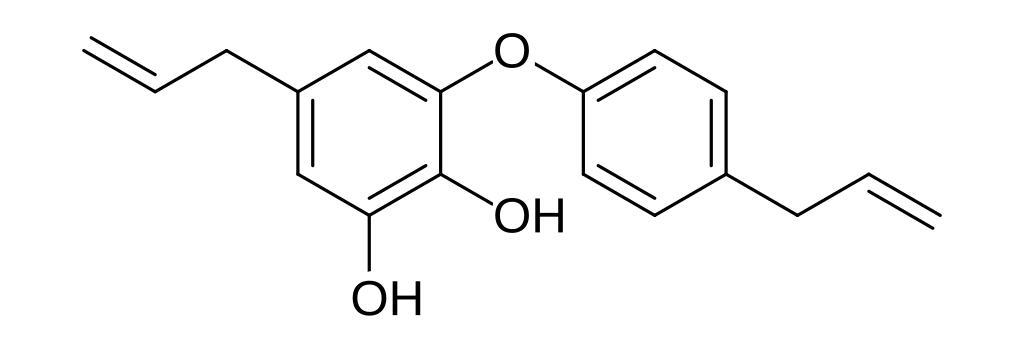 Keywords: Obovatol.svg Chemical structure of obovatol Own 11 47 29 December 2013 UTC Ed Edgar181 Allyl compounds Phenol ethers Dihydroxybenzenes