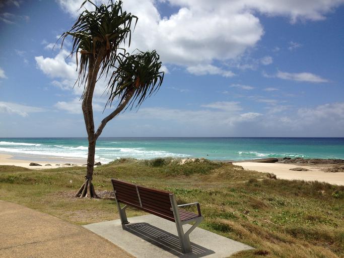 Keywords: ocean beach sun sky sand pandanus vacation summer sea nature water blue lifestyle beach sand landscape relax bench rocks scenery
