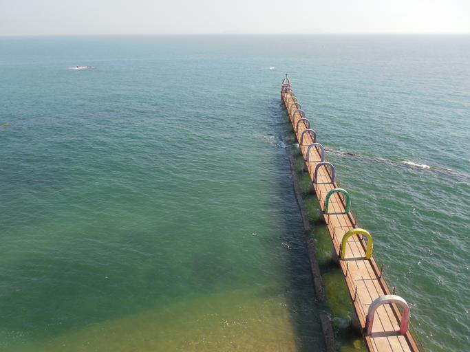 Keywords: ocean bridge beach waves water travel bay blue coast horizon sun holiday