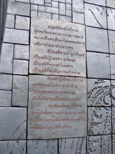 | Keywords: October 1973 Memorial Plaque, Bangkok (2).JPG en wikipedia 2012 April 8 Photo by User Adam Carr July 2005 Transferred from http //en wikipedia org en wikipedia; transferred to Commons by User Premeditated Chaos using http //tools wikimedia de/~magnus/commonshelper php CommonsHelper 2006-07-05 Original uploader was Adam Carr at http //en wikipedia org en wikipedia Released into the public domain by the author en wikipedia Adam Carr Original upload log en wikipedia October_1973_Memorial_Plaque 2C_Bangkok_ 282 29 JPG 2006-07-05 07 01 Adam Carr 1200×1600× 545490 bytes <nowiki>Photo by User Adam Carr July 2005</nowiki> Monuments and memorials in Bangkok |