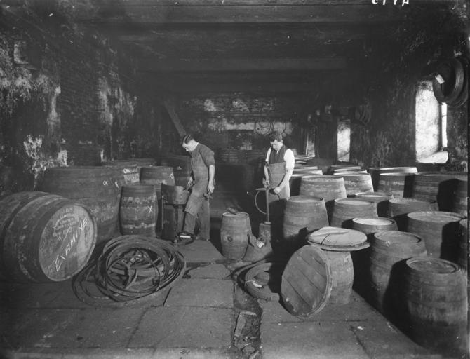 | Keywords: h. downes & co. hdownesco downes & co. downesco henry downes henrydownes h. downes hdownes wine & whiskey stores winewhiskeystores coopers cooperage barrels hoops lids whiskey ireland anvil poole collection poolecollection glass negative glassnegative 10 thomas street 10thomasstreet thomas street thomasstreet a.h. poole ahpoole arthur henri poole arthurhenripoole jimmy maher jimmymaher james maher jamesmaher people identified peopleidentified bullring slieverue jimmy hennessy jimmyhennessy james hennessy jameshennessy barrack street barrackstreet waterford national library of ireland nationallibraryofireland blackandwhite monochrome black and white We're back with H. Downes and Co., 10 Thomas Street, Waterford for October's last Pic of the Day. This time it's the Cooperage Department. The barrel on the left, that's been chalked to be examined, contains Jameson Whiskey. Others already inspected are marked with an OK, or X (presumably not OK). H. Downes & Co. (established 1797) lives on at this location, now a pub... Thanks very much to 39 chevy for identifying Jimmy Maher (left) and Jimmy Hennessy. See the comments below for further information, e.g. Jimmy Maher's daughter married Jimmy Hennessy's son Maurice, who's 39 chevy's father... Date: 31 October 1936 NLI Ref.: P_WP_4175 We're back with H. Downes and Co., 10 Thomas Street, Waterford for October's last Pic of the Day. This time it's the Cooperage Department. The barrel on the left, that's been chalked to be examined, contains Jameson Whiskey. Others already inspected are marked with an OK, or X (presumably not OK). H. Downes & Co. (established 1797) lives on at this location, now a pub... Thanks very much to 39 chevy for identifying Jimmy Maher (left) and Jimmy Hennessy. See the comments below for further information, e.g. Jimmy Maher's daughter married Jimmy Hennessy's son Maurice, who's 39 chevy's father... Date: 31 October 1936 NLI Ref.: P_WP_4175 |