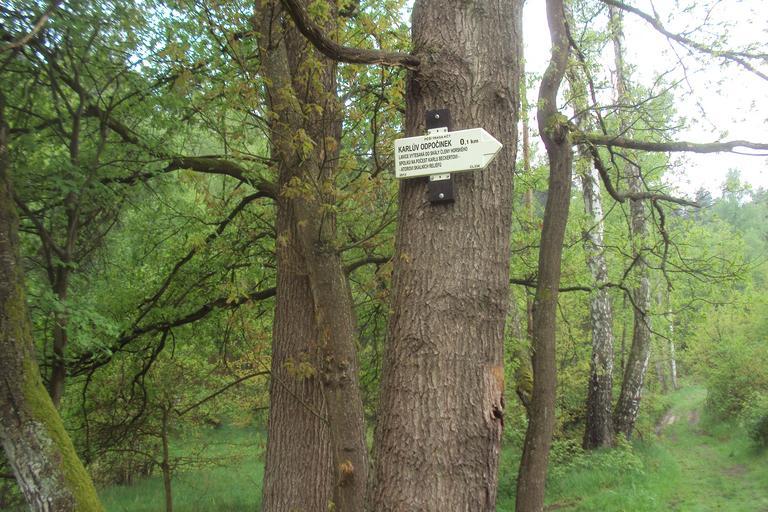 Keywords: Odbočka Karlův odpočinek.JPG cs Odbočka nedaleko obce Kunratice own Zákupák 2014-05-07 Kunratice u Cvikova Hiking and footpath fingerposts in Česká Lípa District