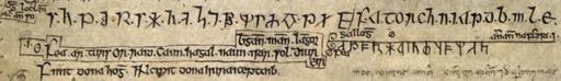 Keywords: Ogham futhark ballymote.png ogam lochlannach andso Scandinavian Ogham here Description of the Younger Futhark as Viking Ogham in the Book of Ballymote AD 1390 F U Th A R K H NA S T B MLR f a t o r c h n i a s d b m l e galoga -- anmand na feda i fea ar turs or raid caun hagal naun isar sol diur bangann mann langor eir Viking Ogham names of the letters PD-Art Book of Ballymote Artworks missing infobox template |