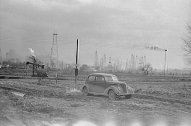 Keywords: Oil field.JPG 1940 Oil field 1937 Ford Marion County Illinois near Salem Illinois <br>CALL NUMBER LC-USF33- 003534-M3 P P <br>REPRODUCTION NUMBER LC-USF33-003534-M3 b w film nitrate neg <br>MEDIUM 1 negative nitrate ; 35 mm <br>CREATED/PUBLISHED 1940 Feb <br>CREATOR Rothstein Arthur <br>PART OF Farm Security Administration - Office of War Information Photograph Collection Library of Congress <br>REPOSITORY Library of Congress Prints and Photographs Division Washington DC 20540 USA Library of Congress online image http //hdl loc gov/loc pnp/fsa 8a13148 PD-USGov Economy of Illinois Marion County Illinois Oil fields of the United States 1937 Ford automobiles Ford Model 74 1940 in Illinois Arthur Rothstein Nitrate negatives