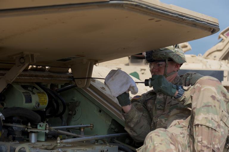 | Keywords: noble partner noblepartner army usareur u.s. army usarmy u.s. army europe usarmyeurope tanks war cannon 3id people VAZIANI TRAINING AREA, Georgia — A Soldier assigned to 1st Battalion., 64th Armor Regiment, 1st Brigade, 3rd Infantry Division, checks the oil levels of a Bradley Infantry Fighting Vehicle at Vaziani Training Area, Georgia, May 6, in preparation for Noble Partner 16. The exercise is scheduled to take place May 11 to 26 and will include approximately 1300 participants from the U.S., Georgia and the U.K. The exercise is a reoccurring training event that takes place at Vaziani Training Area, Georgia. Noble Partner 16 is a critical part of Georgia's training for its contribution of a light infantry company to the NATO Response Force (NRF) and enhances Georgian territorial self-defense capability. (Photo by Sgt. Daniel Cole, U.S. Army Europe Public Affairs) VAZIANI TRAINING AREA, Georgia — A Soldier assigned to 1st Battalion., 64th Armor Regiment, 1st Brigade, 3rd Infantry Division, checks the oil levels of a Bradley Infantry Fighting Vehicle at Vaziani Training Area, Georgia, May 6, in preparation for Noble Partner 16. The exercise is scheduled to take place May 11 to 26 and will include approximately 1300 participants from the U.S., Georgia and the U.K. The exercise is a reoccurring training event that takes place at Vaziani Training Area, Georgia. Noble Partner 16 is a critical part of Georgia's training for its contribution of a light infantry company to the NATO Response Force (NRF) and enhances Georgian territorial self-defense capability. (Photo by Sgt. Daniel Cole, U.S. Army Europe Public Affairs) |