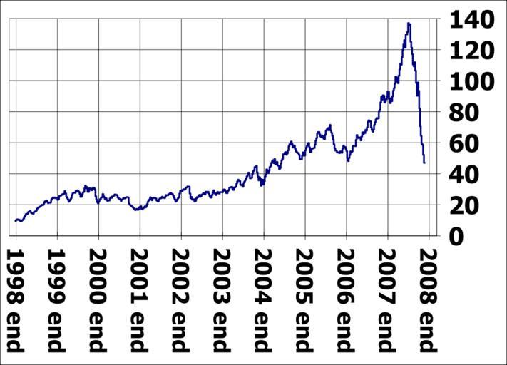 Keywords: Oil world price from 1998 to 2008 November 21.svg en World oil price from 1999 to 2008 November 21; weekly prices in United States dollars per barrel on the vertical scale with year markers on the horizontal scale I 84user created this work using the excel file pet_pri_wco_k_w xls from the U S Energy Information Administration's web page http //tonto eia doe gov/dnav/pet/pet_pri_wco_k_w htm direct link http //tonto eia doe gov/dnav/pet/xls/pet_pri_wco_k_w xls and using Open Source Gnumeric 1 9 1 to produce the chart 2008-12-03 84user talk None See Licensing below See also thumb left US oil price in dollars from 1999 to 2008-10-17 thumb center US oil price from 1998 to 2008-10-31 thumb left US oil price from 1998 to 2008-11-21 thumb cnter World oil price from 1998 to 2008-11-21 thumb left World oil price in dollars from 1978 to 2008-10-17 log scale thumb center oil world price from 1998 to 2008 October clr SVG economics |