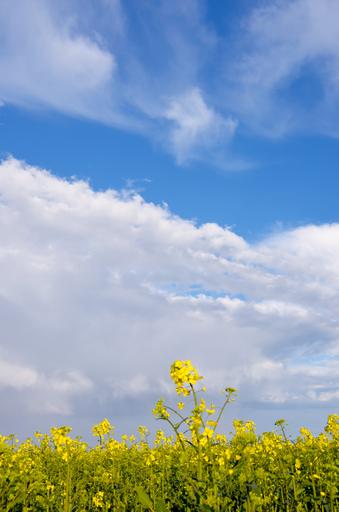 Keywords: oilseed rape sky yellow field of rapeseeds landscape clouds nature plant spring rape blossom field blossom bloom background